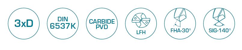 SHIIKO 3xD kovametallipora - PVD-pinnoitettu - Jäähdytysnestekanavat- Kärkikulma 140⁰- Ruostumattomille teräksille ja seosteräksille- Halkaisija-alue 3-20 mm