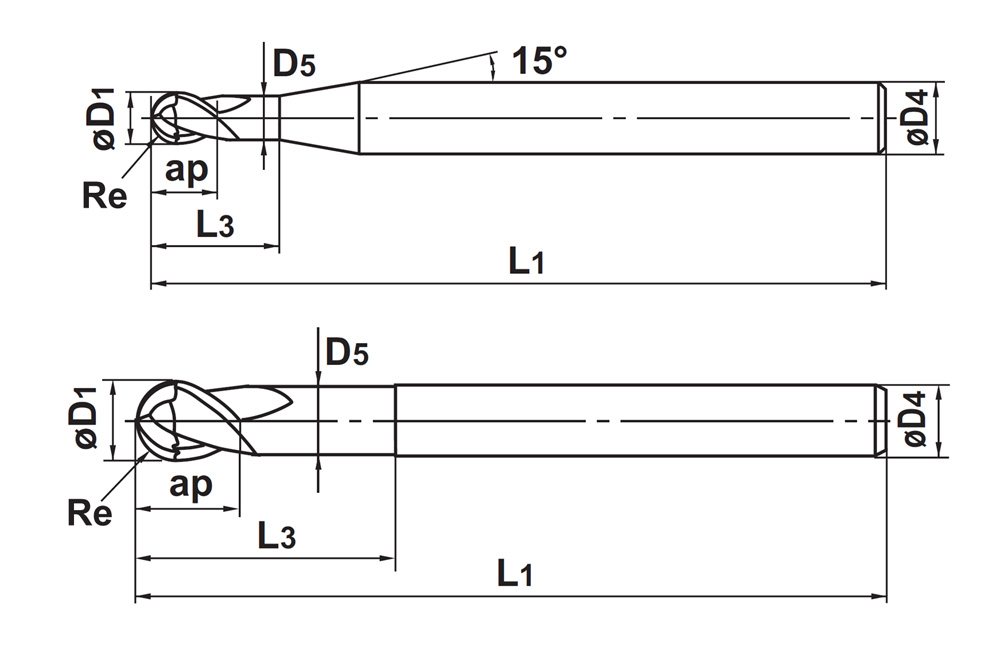 - Alumiinin koneistukseen suunnitellut erikoislastu-urat kitkattomaan lastun poistoon.