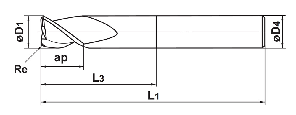 - Alumiinille soveltuva 3-leikkuinen varsijyrsin.