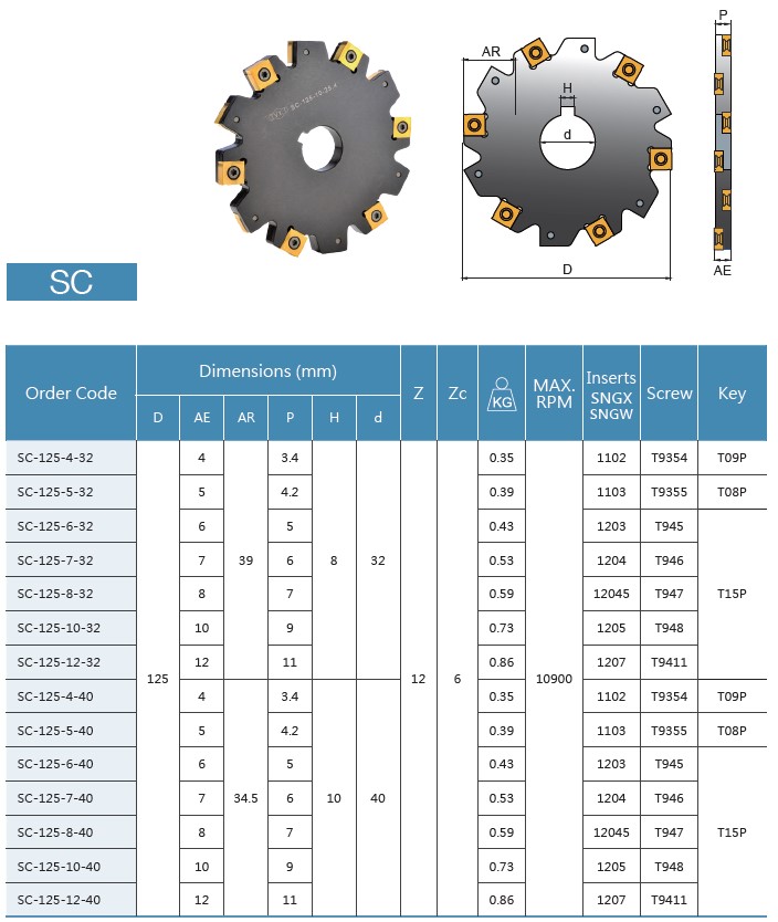Valitse sopiva terän leveys SC-125-X-22Kiinnityskoko joko 32 tai 40 mmHuomioi leikkuiden määrä syötössä. Z12/6