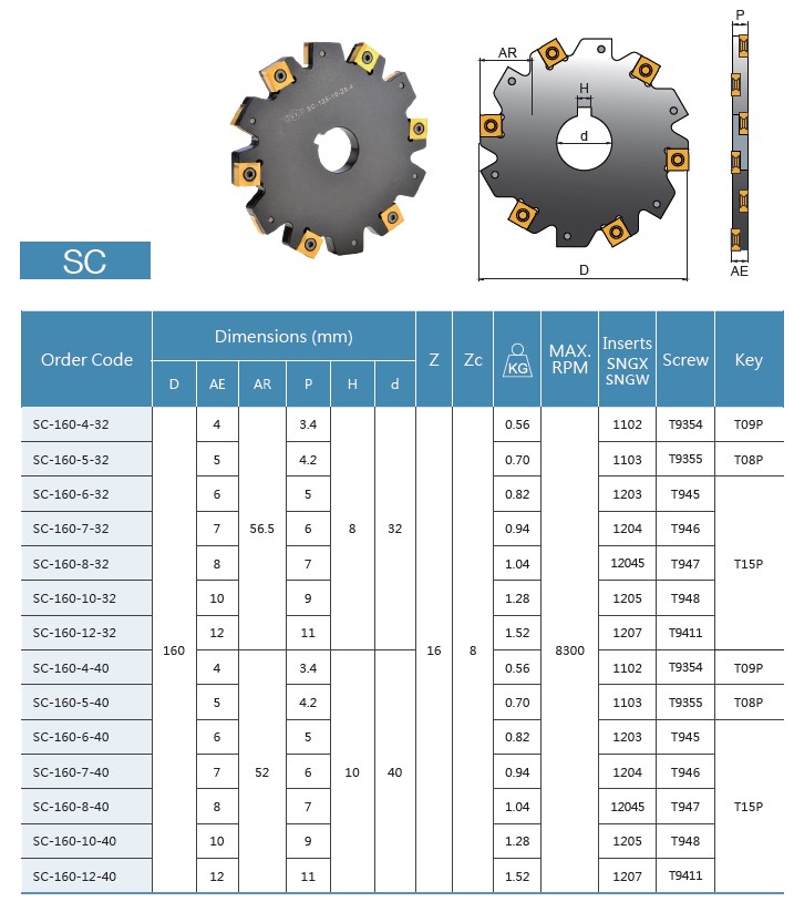 Valitse sopiva terän leveys SC-160-X-22Kiinnityskoko joko 32 tai 40 mmHuomioi leikkuiden määrä syötössä. Z16/8